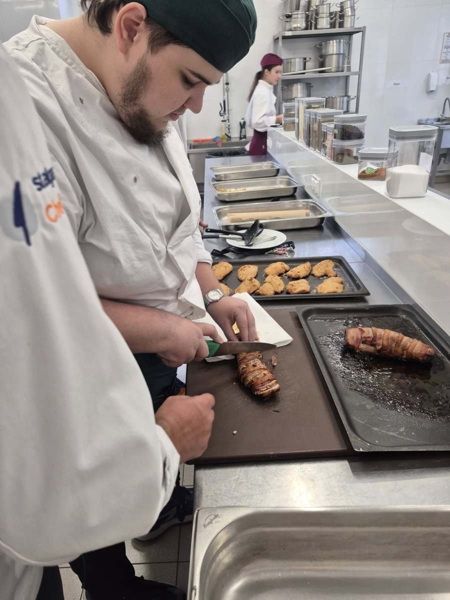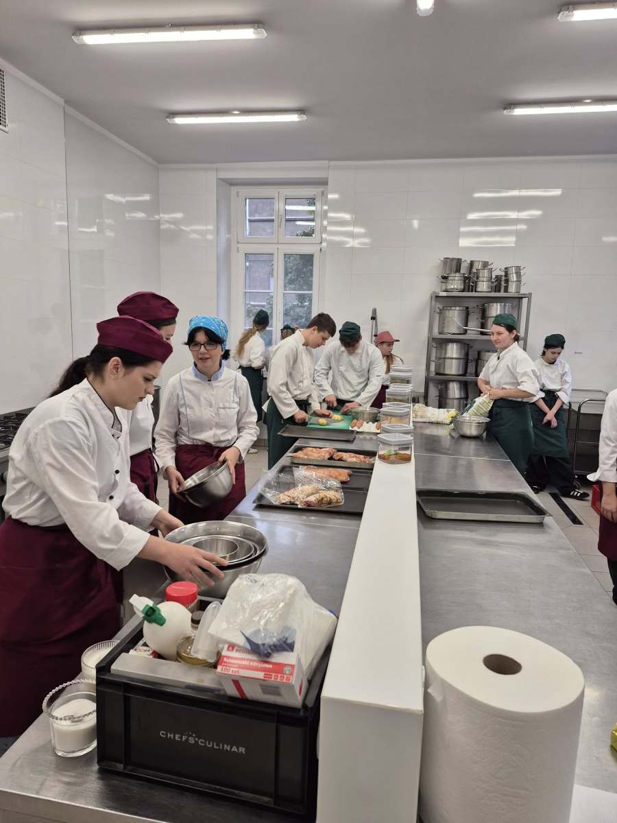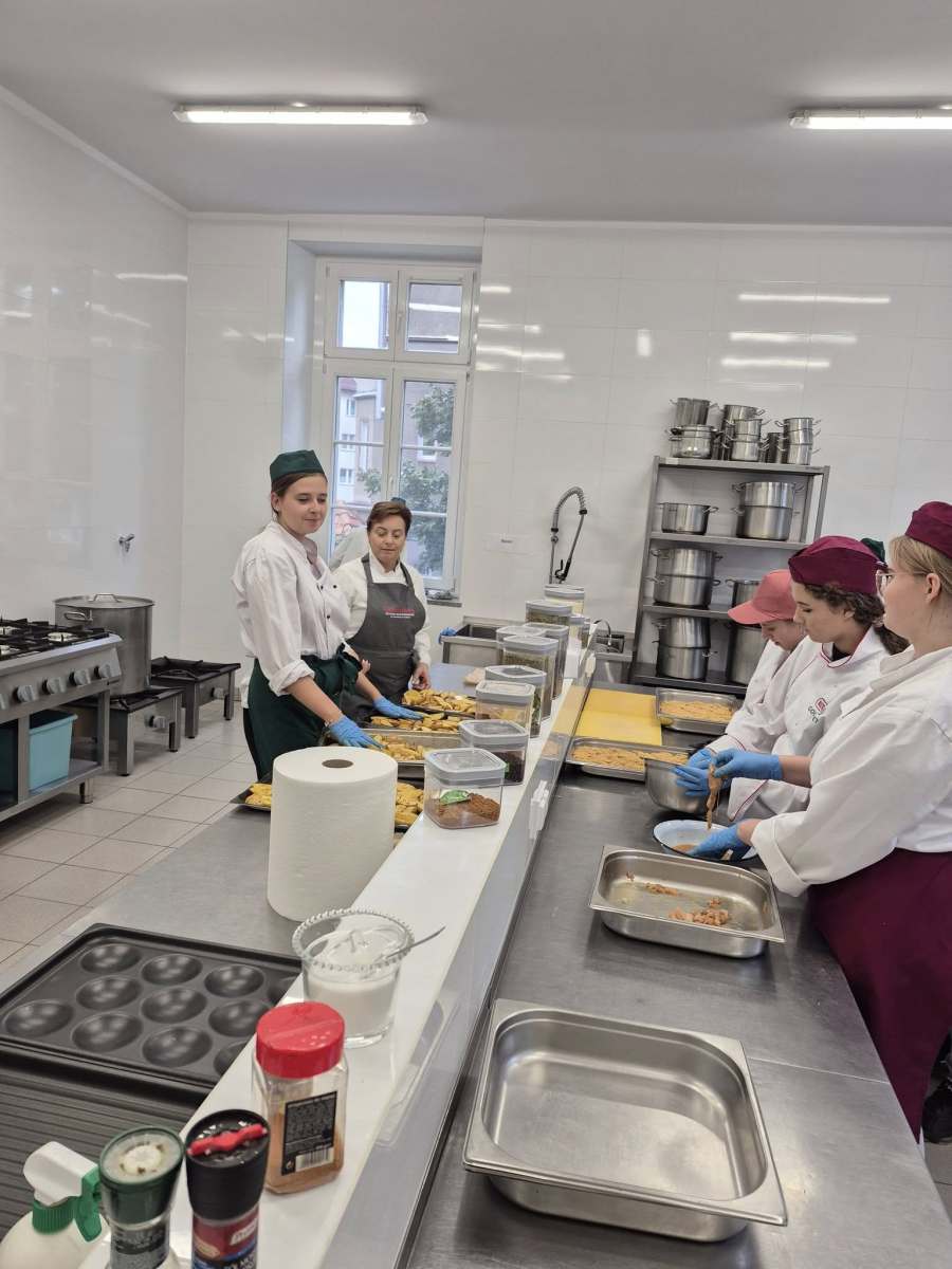 Zanim uczniowie przystąpili do gotowania na nowym sprzęcie, przedstawiciel firmy Stalgast Maciej Białas przeszkolił z obsługi pieca konwekcyjno-parowego.  Zapachy potraw rozchodziły się po kuchni.  Kusiły i zachęcały do degustacji.
