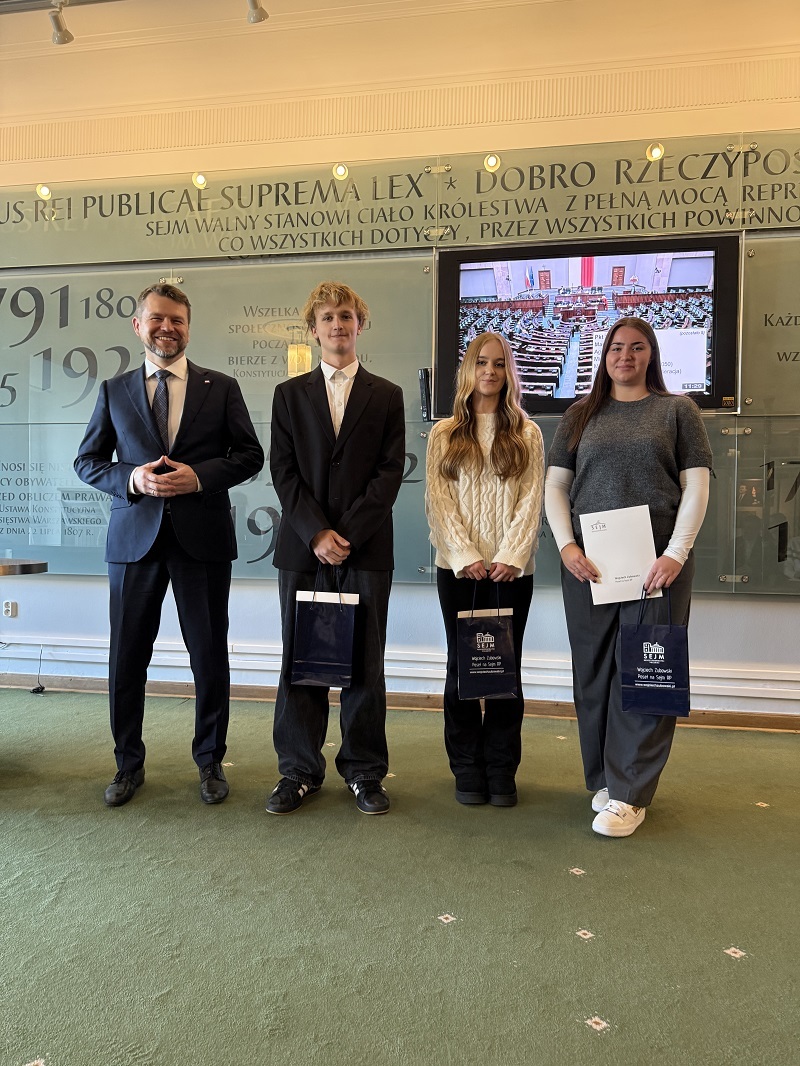 W tym roku z okazji tysięcznej rocznicy Koronacji Bolesława Chrobrego poseł zachęcił młodzież do uczestnictwa w konkursie, którego celem była głęboka refleksja nad dziejami naszej Ojczyzny. Zachęcił do spojrzenia na historię w szerokiej perspektywie – od czasów plemiennych, przez kształtowanie się państwa Piastów, epokę świetności Polski w średniowieczu i renesansie, rozwój I Rzeczypospolitej, aż po dramatyczne doświadczenia rozbiorów, utraty państwowości i walkę o jej odzyskanie.  Zadaniem konkursowym było przedstawienie – w dowolnej formie literackiej (esej, rozprawka, opowiadanie, wypracowanie) – tego wydarzenia, które zdaniem uczestników najbardziej zaważyło na losach naszego państwa i narodu. Nagrodą główną był tablet, a dodatkowo autorzy wyróżnionych prac  zwiedzili Sejm RP i Warszawę.